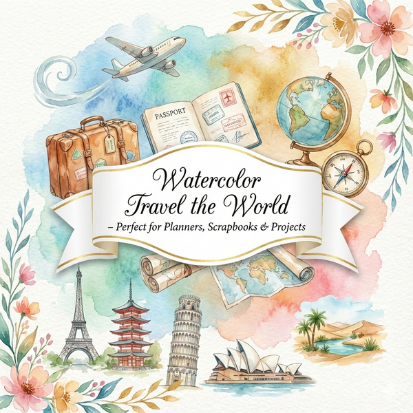 Watercolor Travel the World Clipart – Creative Graphics for Your Projects