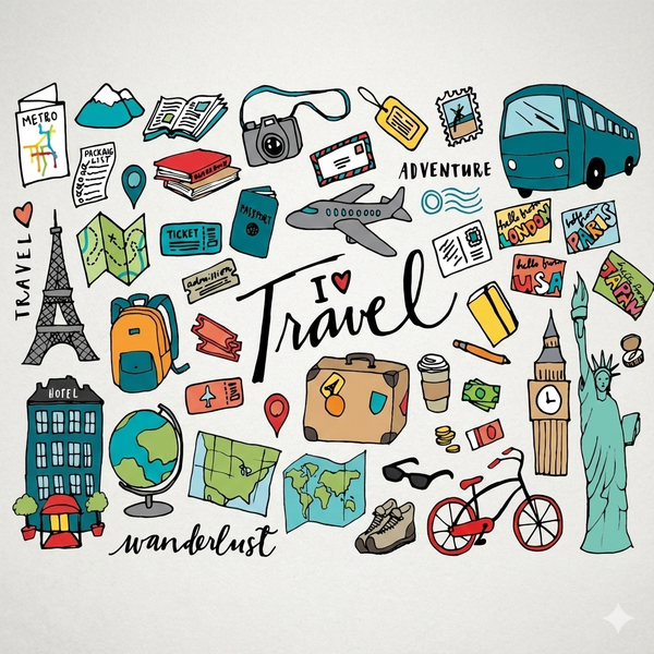 Travel Clipart – Hand-Drawn Illustrations for Creative Projects