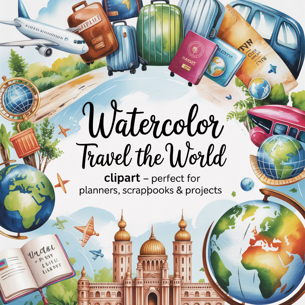 Add a handcrafted, travel-hearted look to your work—grab the Watercolor Travel the World Clipart pack and start designing beautiful travel visuals in minutes.